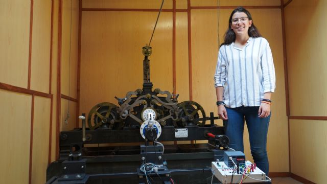 La estudiante de la Universidad Politécnica de Cartagena (UPCT) Laura Salas Lajarín ha concluido su grado en Ingeniería de Tecnologías Industriales diseñando una estructura externa flexible que, junto al PLC y a una serie de motores y sensores, permite subir los contrapesos que dotan de energía al reloj y que llegan a bajar hasta la base del edificio.