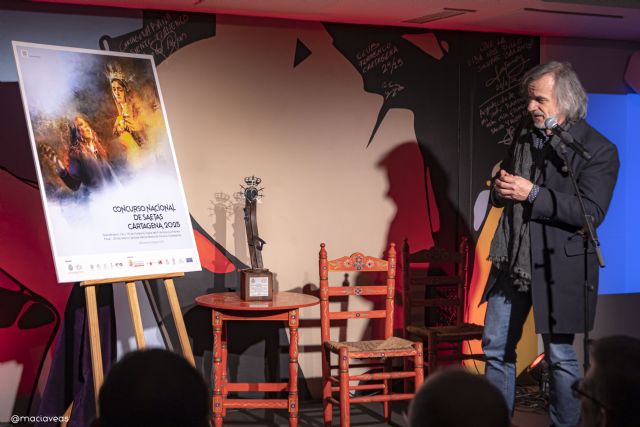 El escultor Fernando Saénz de Elorrieta ha mostrado al público asistente la escultura-trofeo que recibirá el ganador de esta edición del concurso de saetas. Cabe destacar el carácter original y único de cada una de las esculturas realizadas para este certamen.