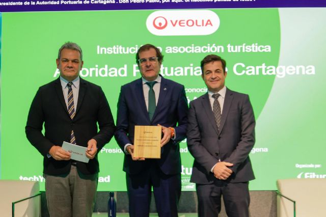 El acto ha tenido lugar en el pabellón 12, dentro del foro FiturtechY · techYsostenibilidad. El galardón, otorgado por Veolia, reconoce a la Autoridad Portuaria de Cartagena como institución modelo de gestión sostenible y crecimiento en el ámbito turístico.