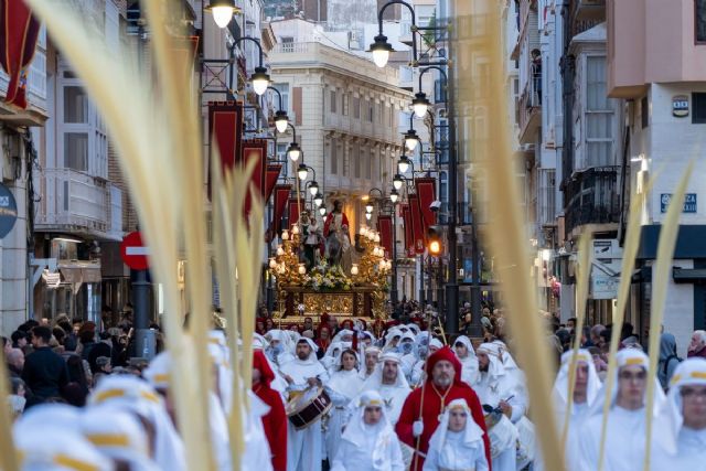 El desfile, que se desarrolla a primera hora de la tarde a la luz del día, se caracteriza por la ausencia de capirotes, ya que en su lugar son niños y niñas con trajes de hebreos portando palmas o ramas de olivo, los que recorren las calles del centro de la ciudad manteniendo, eso sí, el orden y el paso igual que los tercios, además de lucir los colores de las agrupaciones titulares que conforman la Cofradía California. De este modo, se forman los futuros procesionistas que desfilarán el Martes, Miércoles o Jueves Santo.