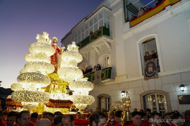 La alcaldesa, Noelia Arroyo, asistió a la caída del sol a la primera salida, la del Santiago Apóstol, desde el interior del Gobierno Militar, y luego se dirigió al Arsenal Militar, donde procesionó con San Pedro después de que el almirante, Alejandro Cuerda, le diera un permiso de 24 horas, un año más, a Pedro Marina Cartagena. La novedad este año fue que el almirante le cedió el testigo a una cantaora, Rocío, para dar permiso de salida cantándole unos versos al apóstol.