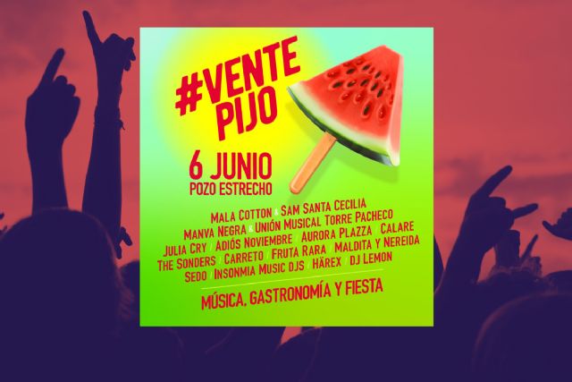 Pozo Estrecho volverá a llenarse de música y sabor con el regreso del festival Ventepijo, que se celebrará el próximo sábado 6 de junio en el recinto Paco Saura de esta diputación cartagenera. Tras cuatro años de pausa, el evento, que cuenta con la colaboración del Ayuntamiento, regresa con la esencia que lo convirtió en un evento pionero en la Región de Murcia. Se trata de una propuesta accesible y pensada para todos los públicos.