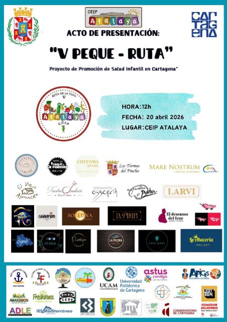 La rueda de prensa se celebrará el próximo lunes, 20 de abril, a las 12:00 horas, en el Centro de Educación Infantil y Primaria Atalaya sito en la Avda. del Cantón, s/n, 30205, de Cartagena (junto al Palacio de los Deportes). En la misma intervendrá la dirección del centro educativo, que explicará los detalles de la V edición de la ‘Peque-Ruta’.