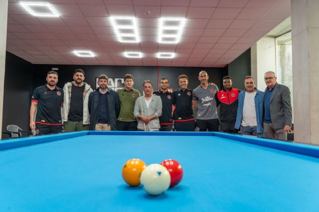 El concejal de Deportes del Ayuntamiento de Cartagena, José Martínez, ha visitado este viernes 17 de abril la nueva sala municipal de billar junto a jugadores y entrenadores del Jimbee Cartagena Fútbol Sala, en una jornada en la que han podido compartir un encuentro con Daniel Sánchez, una de las grandes referencias internacionales del billar a tres bandas y vinculado al Club Billar Cartagena.