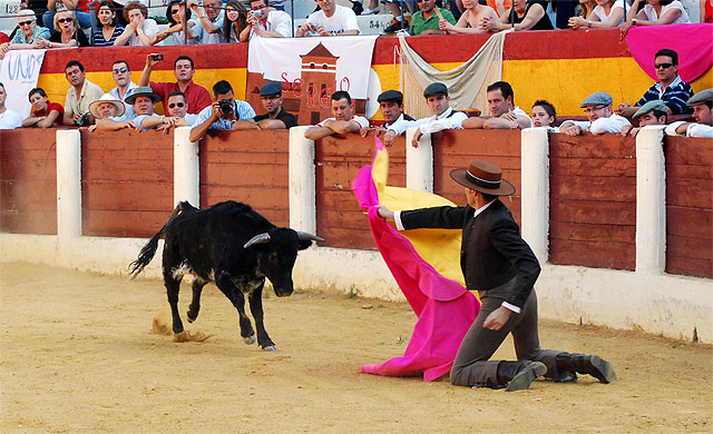 Ramón Mata sorprendió a los asistentes con efectivos pares de banderrillas a lomo de su ya importante cuadra de caballos. ‘El Toneja’, con un astado que embestía mal por el pitón izquierdo, volvió a derrochar chulería con sus descarados adornos y desplantes (todo un figurón). ‘El Niño del Hotelito’, que recibió a su ‘burraco’ de rodillas con una larga cambiada, estuvo sensacional, dejando naturales de cartel de toros. A ‘Dominguín’ le tocó el becerro con menos casta del Madroñiz, el cual no le dejó hacer demasiado, aunque no se vino a bajo y le sacó más de lo que tenía al animal. ‘El Zapatando’ dejó muda la plaza. Con una tranquilidad que se le desconocía, veroniqueó a su becerro y le sacó numerosas tandas de muletazos por ambos pitones, cuajando una actuación impropia de un aficionado. Rubén Hidalgo salió al ruedo a dejarse la piel, con una faena de capote con más empaque que la de muleta, ya que su novillo tampoco le dejó hacer más. Y ‘El Filomeno’, la sensación de la tarde. Con mucho temple, pensando delante de la cara del novillo, con las ideas muy claras, hizo que el coso ceheginero se rindiera a sus pies. Acertó en su faena y demostró grandes facultades para el toreo.