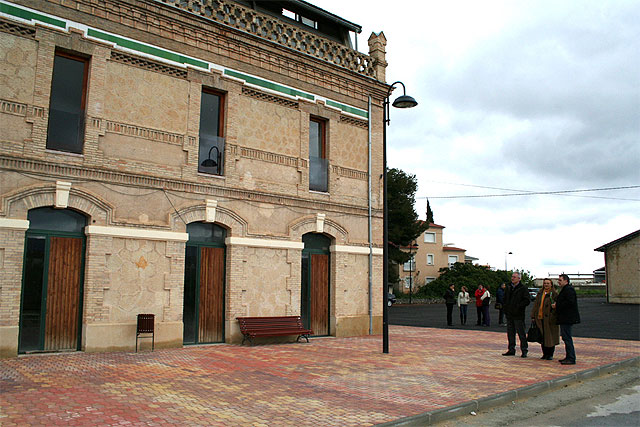García también ha inaugurado, junto al alcalde de Cehegín, José Soria, las obras de acondicionamiento del entorno de la antigua Estación de Tren, que han consistido en el pavimentado de toda la zona (una superficie de 1.500 metros cuadrados), la instalación de bancos, papeleras y farolas, la plantación de árboles, el adoquinado de las aceras perimetrales al edificio, y la preparación de un espacio para aparcamientos, “dándole así el realce que este edificio merece”, destacó García. Las obras han tenido una inversión de 90.000 euros, financiados por el Consorcio de la Vía Verde.