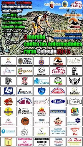 Está marcha, como decimos, está organizada por el Club MTB Los Simao y la Delegación de la Asociación de Enfermedades Raras D`Genes Noroeste, con la colaboración del Club Falco Trail de Cehegín, la Asociación Adinor y la Concejalía de Deportes del Ayuntamiento de Cehegín.