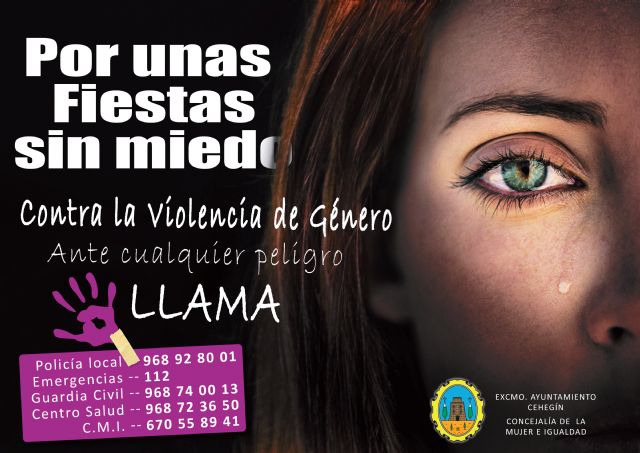 Desde el Ayuntamiento de Cehegín, a través de la Concejalía Educación, Mujer e Igualdad y Sanidad que dirige Mónica Sánchez, se han hechos públicas, con motivo de las Fiestas Patronales, dos campañas de concienciación, una, de sensibilización contra el acoso y violencia de Género hacia las mujeres y, otra, por un consumo responsable de alcohol.
