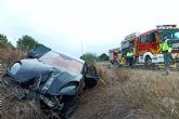 15/12/2022 Rescatan y trasladan al hospital al conductor de un turismo accidentado en la vía rápida RM-15, en Cehegín