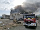 31/03/2022 Bomberos del CEIS trabajan en la extinción de un incendio en un almacén de residuos textiles en Cehegín