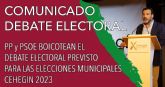 11/05/2023 XCehegin denuncia que "PP y PSOE boicotean el debate electoral previsto para las elecciones municipales"