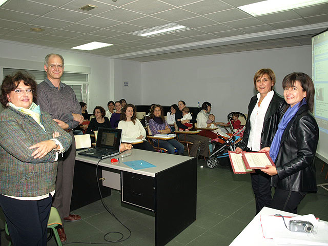 Foto: de izquierda a derecha, Margarita Luque, matrona de Archena; Luis Gutierrez, matrón de Ceutí y Lorquí; la concejala de Sanidad, Josefa Abad; y la doctora Maite Martínez, de la consejería de Sanidad.