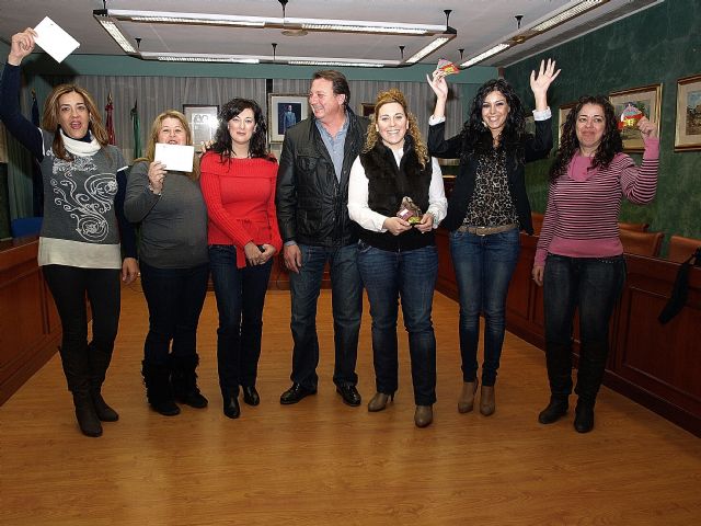 Foto: El alcalde, Juan Felipe Cano, y la concejala de Comercio y Turismo, Adoración Ayala, junto a los propietarios de comercios y clientes ganadores, en el salón de Plenos del ayuntamiento de Ceutí