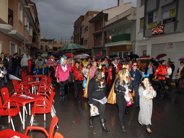 Por las calles de pueblo, la comitiva sardinera ensayó el desfile que se celebrará el 6 de abril en Murcia, con reparto por doquier de juguetes y un gran estruendo de pitidos, música y fuegos artificiales. La sardina descansa ahora en el vestíbulo de la casa consistorial expuesta al público.