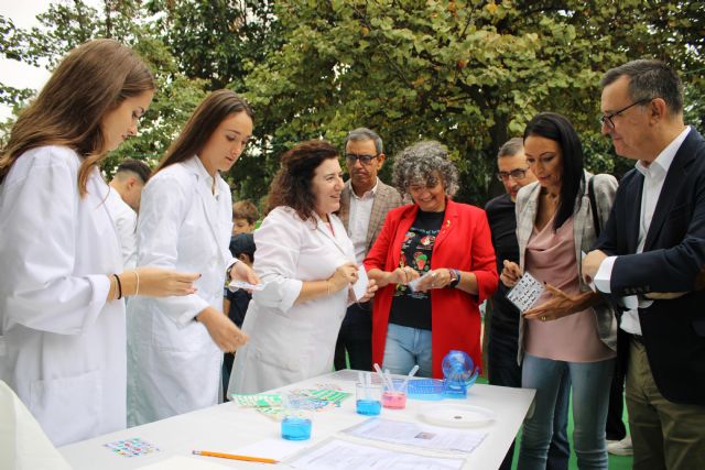 La consejera de Empresa, Empleo, Universidades y Portavocía, Valle Miguélez, visitó esta mañana el jardín del Malecón, en Murcia, donde desde ayer se puede participar en la Semana de la Ciencia y la Tecnología, organizada por la Fundación Séneca.
