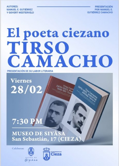 El Museo Siyâsa acogerá este viernes, a las 19.30 horas, una conferencia sobre la figura del poeta Tirso Camacho (Cieza, 1870-1937) con la finalidad de saber más sobre la vida y obra de esta figura local tan poco conocida.