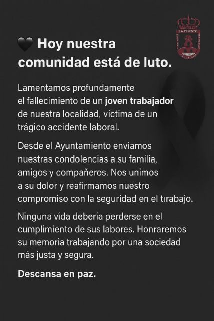 Desde el Ayuntamiento enviamos nuestras condolencias a su familia, amigos y compañeros. Nos unimos a su dolor y reafirmamos nuestro compromiso con la seguridad en el trabajo.