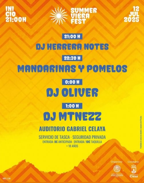 Este 12 de julio, la música será la protagonista en Cieza. ¡Que comience el verano!
