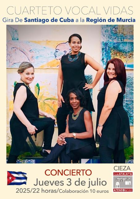 El público de Cieza podrá disfrutar del Cuarteto Vocal Vidas, considerada la mejor agrupación vocal femenina de la música cubana. Vocal Vidas es una formación musical fundada en 2012 en Santiago de Cuba, cuna del son y la música tradicional cubana. Las cuatro mujeres de Vocal Vidas interpretan distintos géneros de la música popular cubana y universal (jazz, soul, etc) a través de un formato peculiar (2 sopranos y 2 contraltos).