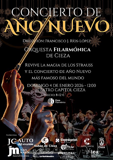 El concierto tendrá lugar el domingo 4 de enero de 2026, a las 12:00 horas, en el Teatro Capitol, y estará dirigido por Francisco J. Ríos-López, al frente de la Orquesta Filarmónica de Cieza.