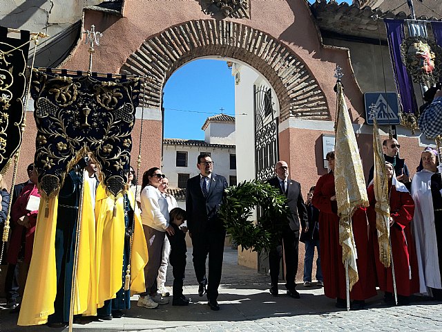 El alcalde de Cieza, Tomás Rubio, y el presidente de la Junta de Hermandades Pasionarias, Joaquín Gómez, rindieron este domingo un homenaje a los cofrades difuntos de la Semana Santa de Cieza dentro de los eventos protocolarios del Domingo de Pasión.