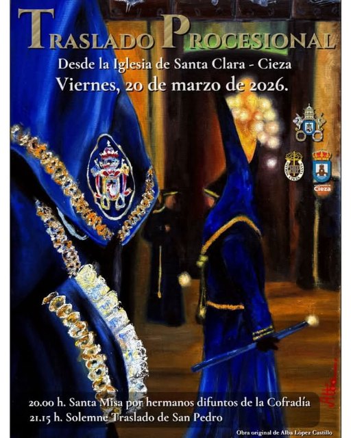 La Cofradía de San Pedro Apóstol celebra este viernes, 20 de marzo, el ya tradicional traslado de su imagen titular, San Pedro, desde la iglesia de Santa Clara hasta la Casa Museo de la Semana Santa de Cieza.