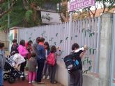 25/10/2012 La AMPA del Colegio La Arboleda de Murcia pone centenares de lazos verdes en la valla del colegio por la defensa de la escuela pública
