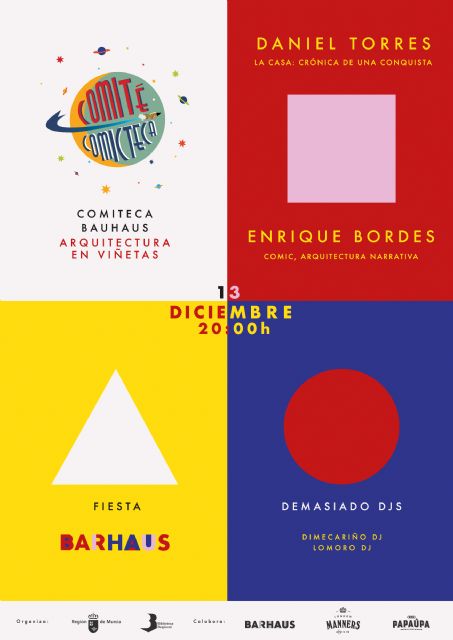 La Comicteca de la Biblioteca Regional de Murcia, dependiente de la Consejería de Educación y Cultura, ha programado para el próximo viernes 13 de diciembre un nuevo evento dentro de su programación de 'Comité Comicteca'. Aprovechando el centenario de la mítica e influyente escuela de arquitectura y diseño Bauhaus, se abordarán las relaciones entre arquitectura y cómics.