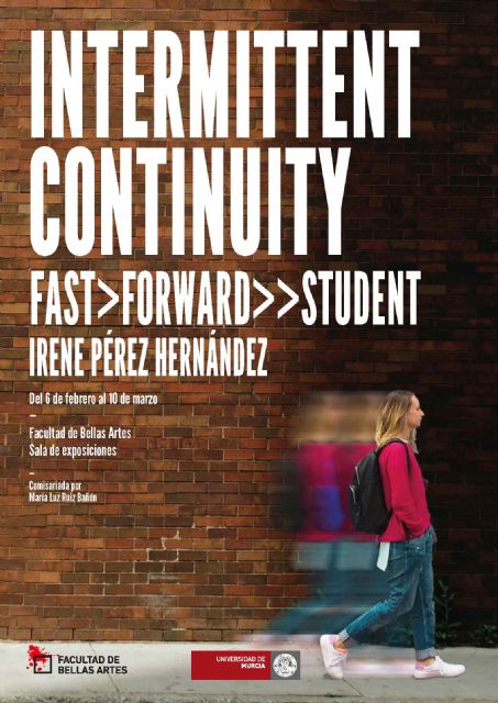 El próximo jueves 6 de febrero a las 10 de la mañana está prevista la inauguración de la exposición Intermittent Continuity. Fast>forward"student de la artista Irene Pérez Hernández en la Sala de exposiciones de la Facultad de Bellas Artes. El evento contará con la presencia de la artista y podrá visitarse hasta el 10 de marzo de 2020. Tras la inauguración se impartirá el taller titulado "Fast>forward"student Facultad de Bellas Artes de Murcia" durante los días 6 y 10 de febrero, en la misma Facultad de Bellas Artes. El taller está dirigido a alumnos de Bellas Artes, estudiantes de artes y humanidades, artistas y profesionales de las artes visuales en general. En él se desarrollará una serie de prácticas artísticas en interacción con los asistentes al taller, desplegándose toda una serie de conceptos ligados a la producción artística actual tanto teóricos como prácticos, como la performance, el objeto encontrado, la escultura y la instalación artística.