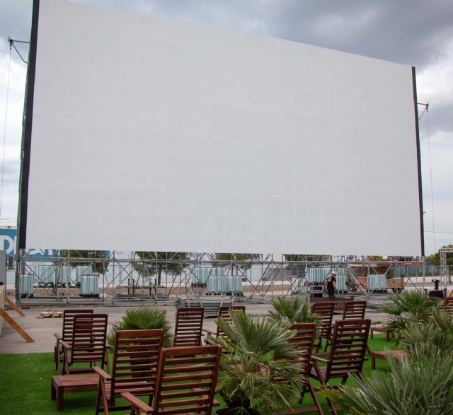 El montaje de la pantalla más grande de Europa, con una estructura de 500 m2, se ha llevado a cabo con éxito. El vanguardista sistema de sonido ya se ha adaptado al autocine, con la disposición de PAs line arraix para un sonido exterior profesional en todo el recinto.