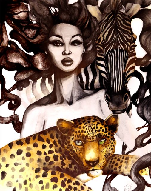 Como el personaje Alice, de Lewis Carroll, en ´Las aventuras de Alicia en el país de las maravillas`, Aarón explora con extremada curiosidad, humor y afecto temas candentes de nuestra sociedad como la feminidad y el empoderamiento de la mujer (“Ni p…ta ni santa”, “La esperanza de Aisha” y “Mawu”), pero también hay en él escepticismo y sentido crítico al abordar la ecología porque en sus pinturas siempre encontraremos evocaciones a la naturaleza y al poder de la vida.