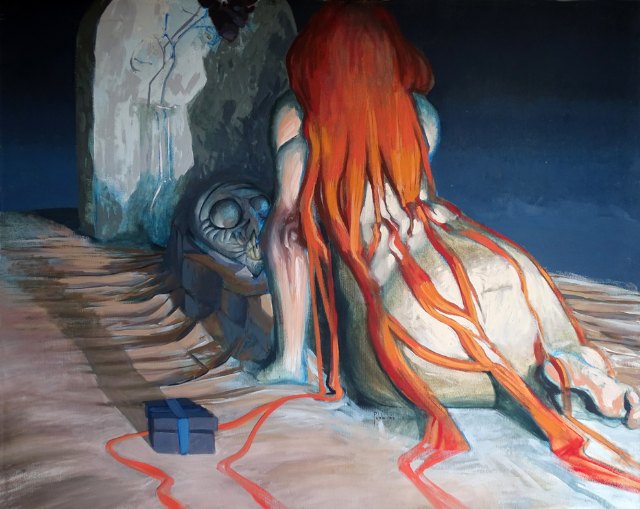El tercero de los artistas seleccionados es un claro heredero de la más pura tradición del cómic y la ilustración pictórica de los años ochenta. Pablo Ruiz (1976) traslada a la tela imágenes que podrían ilustrar perfectamente las mejores publicaciones del cómic actual convirtiéndolas en pinturas de gran formato. La ironía y el sentido del humor son una constante en sus trabajos, reinventa actitudes y miserias humanas dotándolas de una visión caricaturesca de la realidad. El sexo, la violencia, los alienígenas, el mundo del circo, matones, prostitutas y seres monstruosos protagonizan una serie de historias imaginarias capaces de sorprender al espectador con un exceso de veracidad adaptada a la imaginación de su creador. Su pintura es totalmente narrativa, ésa es realmente su intención, generar una secuencia de pequeñas historietas que en su conjunto cuentan las mil y una batallas de opulentas mujeres, poderosas no sólo en su exagerada fisonomía sino también en su atrevida actitud, encuentros amorosos cuyos protagonistas no dejan nada a la censura y sí mucho a la imaginación, o una recreación del origen del mundo como resultado de un difícil parto al que todos asistimos con gran expectación.