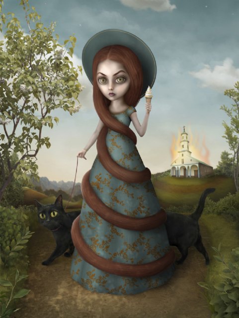 Cada una de sus obras son como grandes ventanas que nos invitan a soñar entre sus pequeñas protagonistas de grandes ojos, a inventar historias para cada una de ellas, a creer que otro mundo es posible, la fantasía todavía duerme en cada uno de nosotros y él es capaz de despertarla.