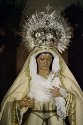08/08/2021 Dolorosa de blanco, la virgen de las Tristeza de blanco en la Hermandad sevillana de Veracruz