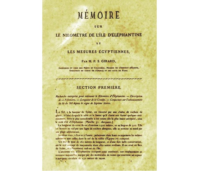 En uno de esos artículos, “Memoria sobre el nilómetro de la isla de Elefantina y las medidas egipcias”, Pierre Simon Girard señala que la unidad central del sistema antropométrico de medidas que se empleaba en Egipto para medir corresponde a un Hombre de 1,80 metros.