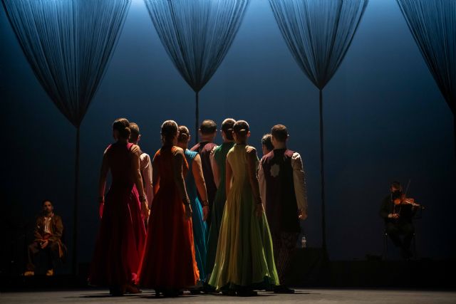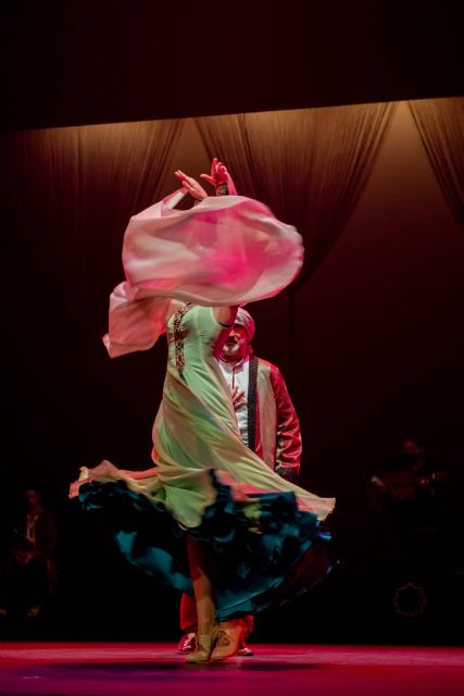 Rey Lobo / Fantasías en la almunia de Ibn Mardanish es danza, música, poesía, luz y color. Amalgama de elementos dentro de una fantasía escénica que evoca al mundo místico sufí, viajando por la intimidad de la oración, la musicalidad en el agua, la majestuosidad del color, la belleza en el movimiento, la delicadeza en la palabra y la embriaguez del amor. Con dirección artística de Olivia Bella y Miguel Ángel Serrano, música creada por Faustino Fernández, la interpretación del actor Luis Martínez Arasa y la apuesta de la productora y distribuidora Vicenta Hellín, llega al Murcia Tres Culturas Rey Lobo.