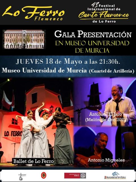 El próximo jueves 18 de mayo a las 21:30h. llevaremos a cabo la presentación de la 43ª edición del Festival Internacional de Cante Flamenco de Lo Ferro en el Museo de la Universidad de Murcia ubicado en el Cuartel de Artillería de la ciudad del Segura.