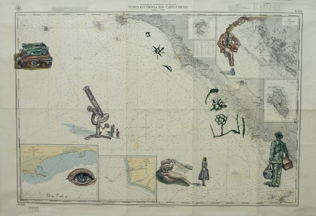 Los dos artistas, el español Salvador Torres, y el italiano que vive y trabaja en España Enzo Trepiccione, han intervenido sobre mapas antiguos, trabajando a cuatro manos.