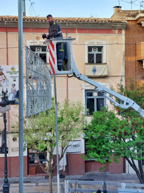 Caravaca de la Cruz se engalana para vivir sus días grandes y recibir a los miles de visitantes y caravaqueños que se dan cita en el municipio con motivo de la celebración de las fiestas patronales de Moros, Cristianos y Caballos del Vino en honor a la Vera Cruz. En las últimas semanas, tanto operarios municipales como técnicos de las empresas adjudicatarias trabajan a contrarreloj para que todo esté listo de cara al próximo domingo, 28 de abril, cuando, tras el pregón de fiestas, tendrá lugar el encendido de alumnado ornamental.