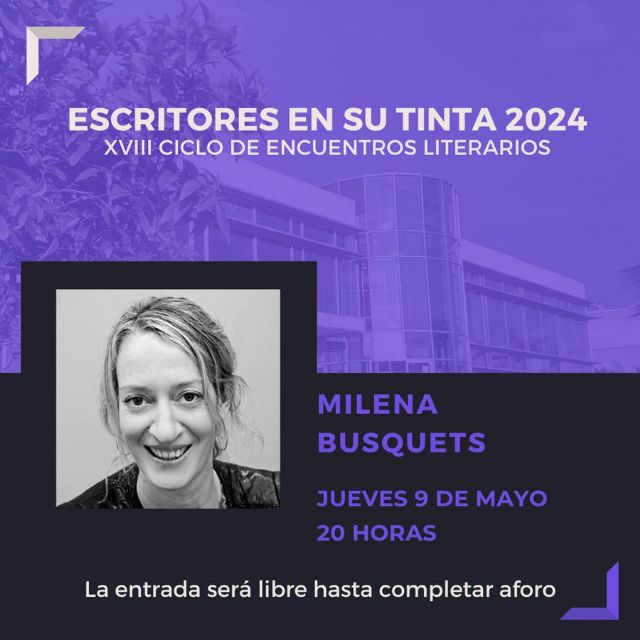 La escritora Milena Busquets será la encargada de clausurar el ciclo Escritores en su tinta 2024. La cita será el próximo jueves9 de mayo en la Biblioteca Salvador García Aguilar de Molina de Segura a las 20.00h.
