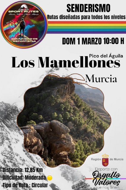 La comunidad deportiva Sport Rutes ha programado para el próximo domingo 1 de marzo, a las 10:00 horas, una nueva jornada de senderismo en uno de los enclaves más espectaculares de la Región de Murcia: Los Mamellones – Pico del Águila, en el término municipal de Murcia.
