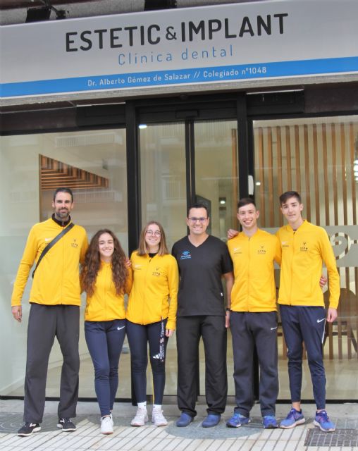 Al acto acudieron un grupo de atletas destacados con el Entrenador Carles Triado, responsable del equipo Sub18 y sub20 del UCAM Cartagena que fueron recibidos por el Doctor responsable de Estetic & Implant el odontólogo D. Alberto Gómez de Salazar, antiguo atleta destacado del club de la trimilenaria.
