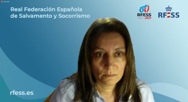 Una imagen de la presidenta de la Real Federación Española de Salvamento y Socorrismo, Isabel García Sanz, durante la sesión telemática de la Asamblea General.