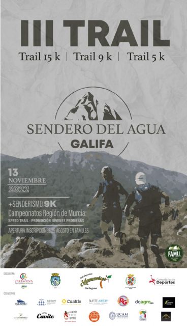 El C.D. Manzanicos organiza el III Trail Sendero del Agua Galifa, puntuable para el circuito Trail Tour FAMU 2022 y que será asimismo testigo del Campeonato de la Región de Murcia de Speed Trail y el Regional de Promoción “Jóvenes Promesas”
