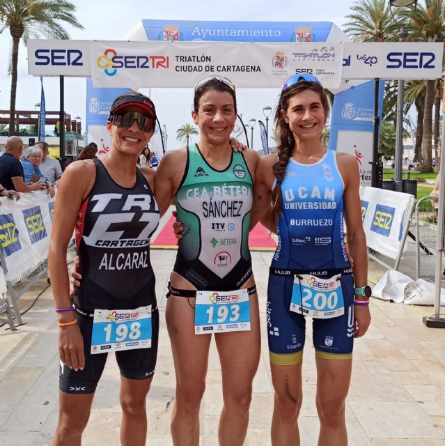 En cuanto a la femenina, Eva Pastor, del CEA Bétera, ha sido la ganadora, firmando un tiempo de 1 hora, 10 minutos y 53 segundos. La segunda posición ha sido para Marina Alcaraz, del Club Triatlón Cartagena, con un tiempo de 1 hora, 16 minutos y 42 segundos. La tercera plaza ha sido para Elena Burruezo, del Fuensanta Impulso UCAM Bitec, con un tiempo de 1 hora, 17 minutos y 47 segundos.
