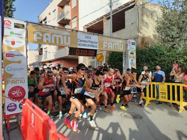 Este domingo tocaba vivir la 24ª prueba del circuito de carreras populares Región de Murcia Running Challenge 2023. Así sería en el marco de una de las citas más conocidas del calendario regional, la Carrera Popular de Nonduermas, que cumplía 29 ediciones, contando en esta ocasión una distancia aproximada de 9km. en la prueba competitiva, dando igualmente la opción de participar en la marcha senderista -no competitiva- de 5km., con salida y meta junto al Centro Municipal de Nonduermas. Todo ello, bajo la organización del Club de Atletismo Ermita de Burgos en colaboración con la Federación de Atletismo de la Región de Murcia.