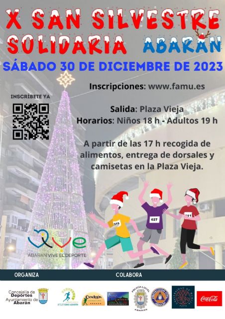 Abarán sigue afianzándose entre las citas con significado especial para terminar el año. Así será por décima ocasión el sábado 30, en el marco de la San Silvestre Solidaria 2023, a partir de las 18:00h. con las pruebas infantiles y dando comienzo a las 19:00h. las citas absolutas, pudiendo elegir entre 2.330m. y 4.660m., con salida y meta en la Plaza Vieja.