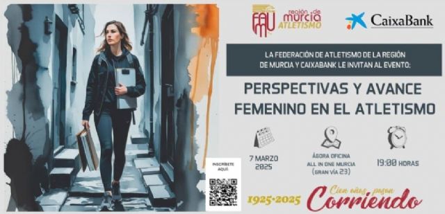 En apenas una semana y en el marco del 8 de marzo, Día Internacional de la Mujer, tendrá lugar un importante evento organizado por la Federación de Atletismo de la Región de Murcia junto a CaixaBank. La oficina Ágora All in One (Gran Vía 23, Murcia) albergará el viernes 7 la jornada 'Perspectivas y Avance Femenino en el Atletismo', a partir de las 19:00h. y que contará con la participación de las componentes de la recientemente creada Comisión de la Mujer.