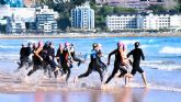 FOTOGRAFÍA 1: Socorristas realizan la salida de la prueba de nadar surf para adentrarse en la Primera Playa del Sardinero, en Santander. Autor: Javier Sánchez-RFESS