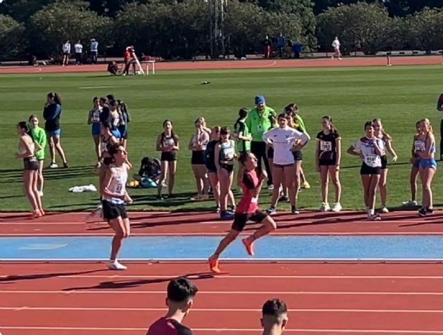 En pértiga lo hizo la atleta del UCAM Cartagena Claudia Bernal (1.90), resultando ganadora en longitud Arancha Arróniz, del UCAM Atlética Alcantarilla (4.86) y Blanca Pérez, del UCAM Cartagena, en peso 3kg. (9.40), con triunfo en disco 800g. para Irene Mompeán, del Atletismo Las Torres (24.60) y en martillo 3kg. para la atleta del C.A.. Murcia PDS Group Mª Dolores Espín (18.13). Natalia Vilar, del Eliocroca, fue la mejor en jabalina 500g. (21.74), así como la atleta del UCAM Athleo Cieza Claudia Marín en 3.000m. Marcha (14:22.53).